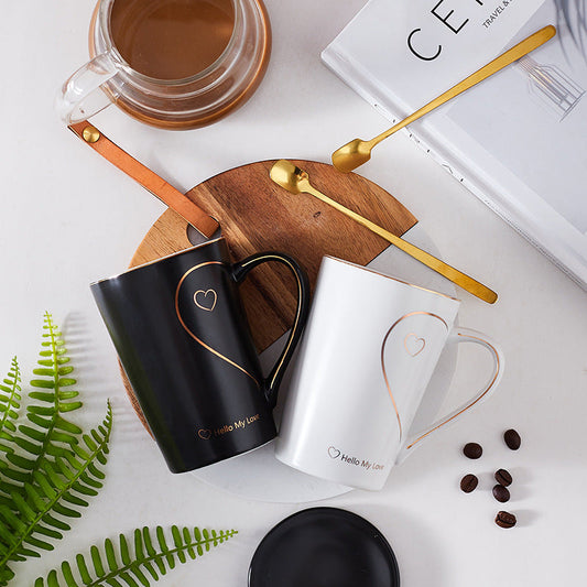 Teacher's Day Gift 450ml Black & White Ceramic Coffee Cup - Perfect Couples Mug